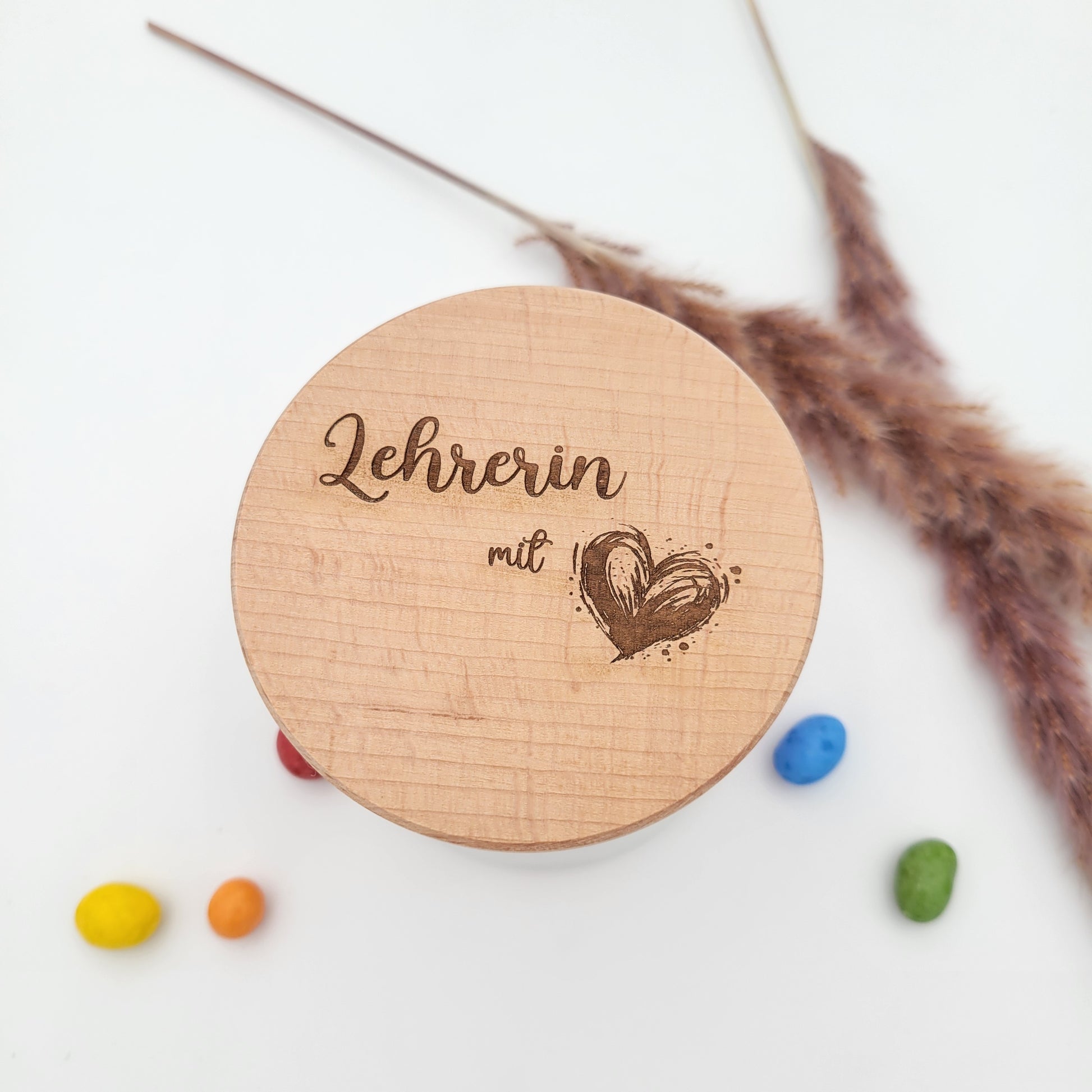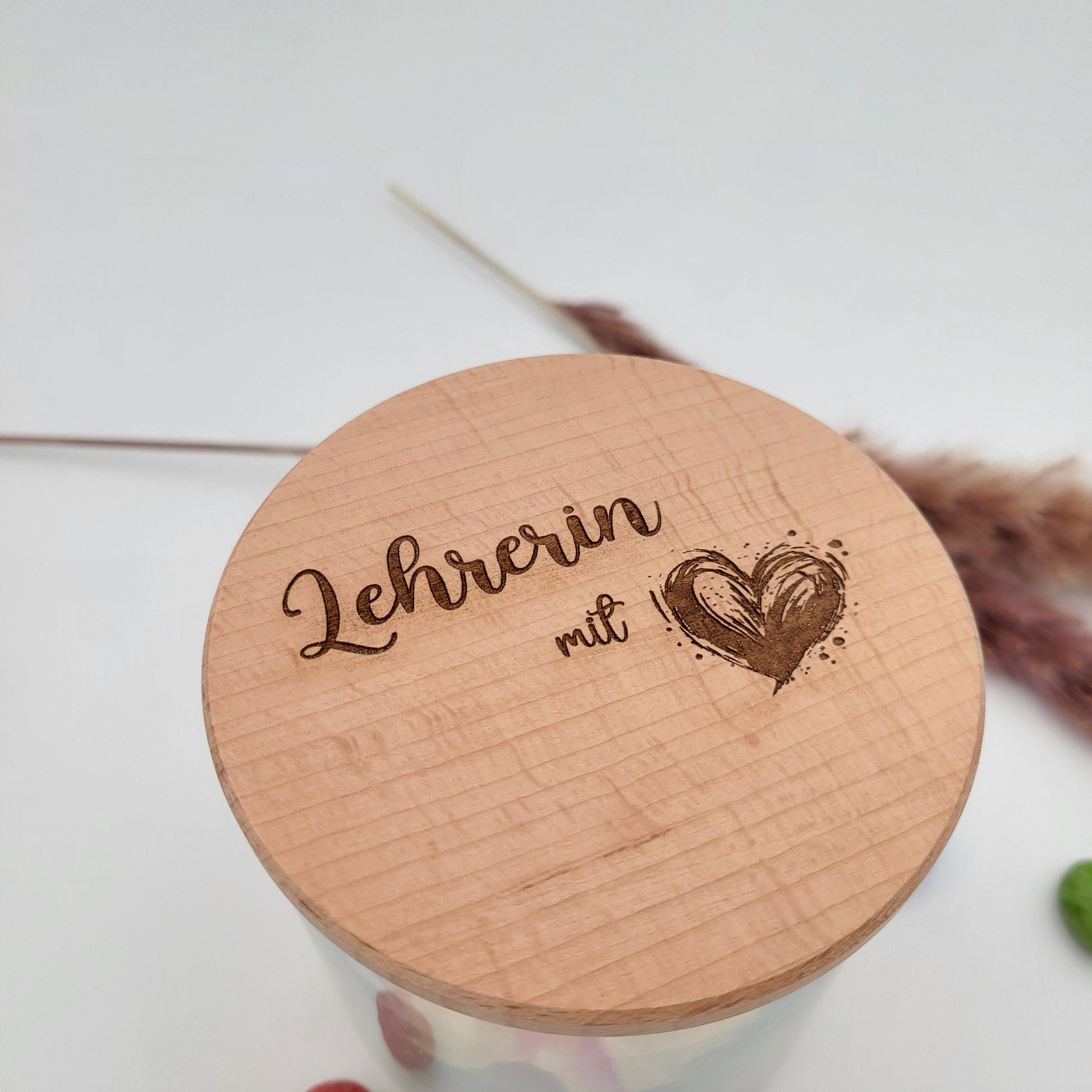Wunderschönes Abschiedsgeschenk für die beste Lehrerin zum Schulabschluss, Schulwechsel oder einfach so als kleines Dankeschön für ihre Arbeit. Auf Wunsch mit Personalisierung des Namens. Eine Tolle Aufmerksamkeit und Dankeschön zum Abschied. Unser Vorratsglas mit Buche Holzdeckel wird von uns graviert.