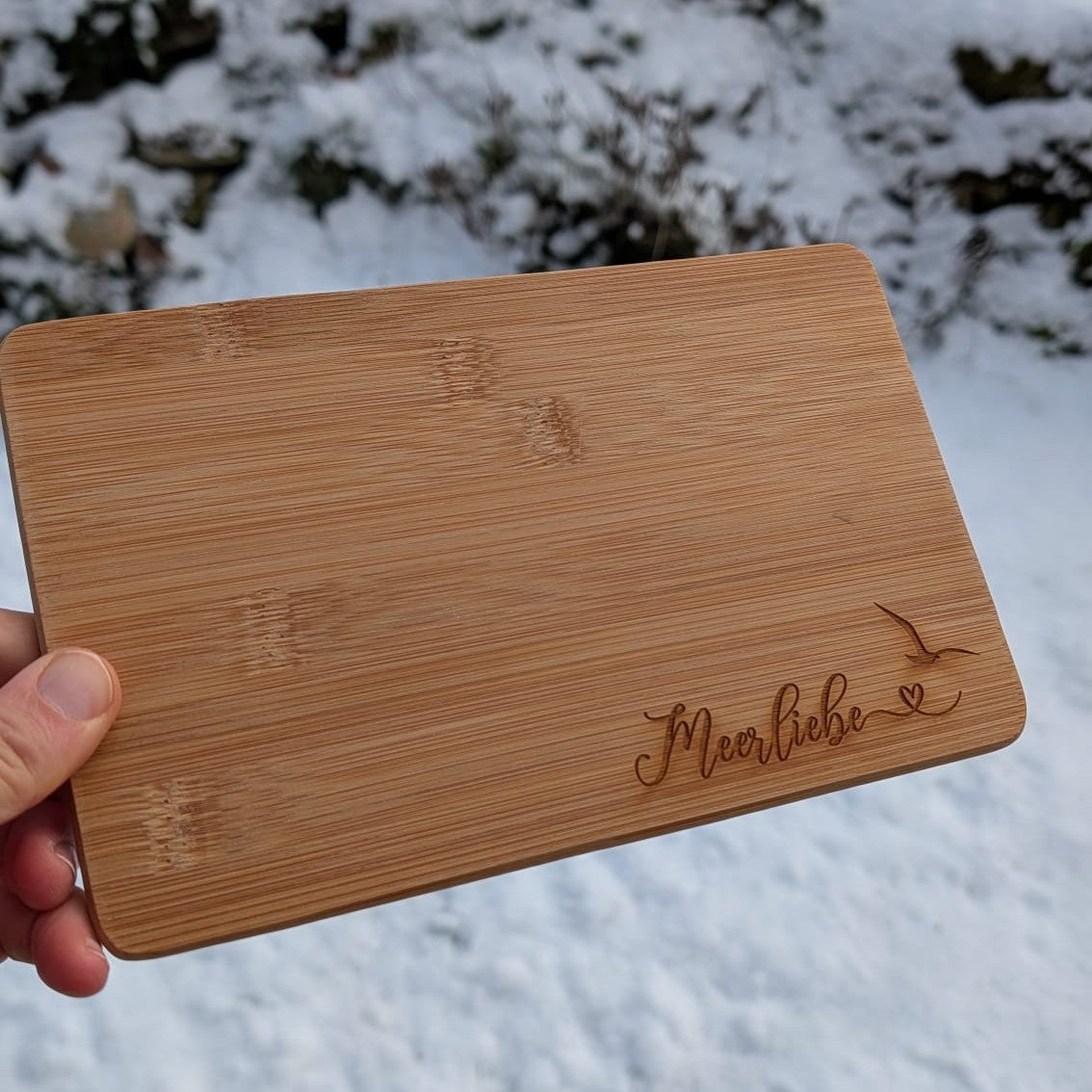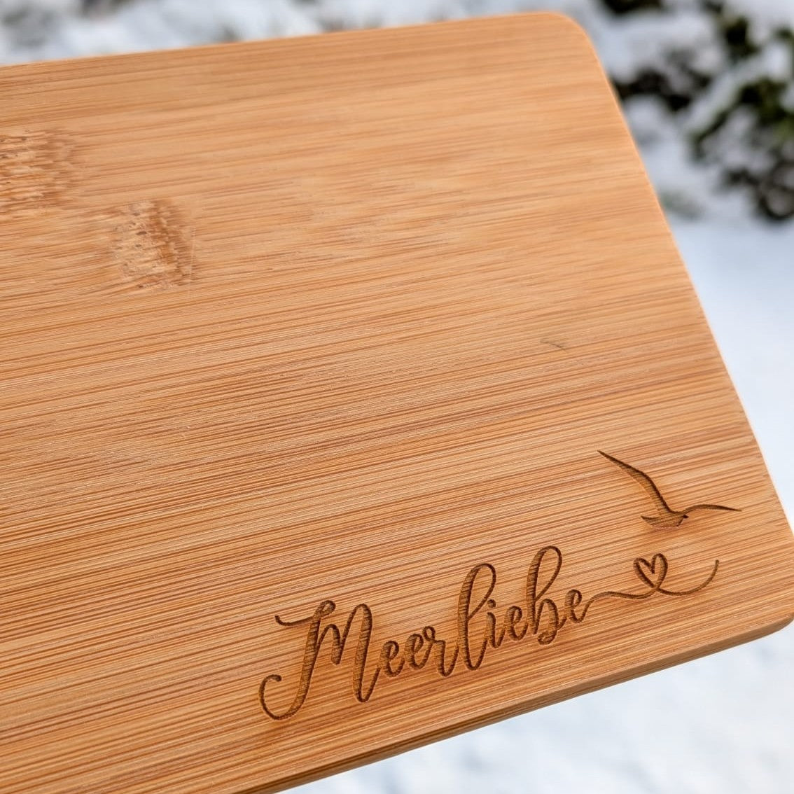 Tolles Frühstücksbrettchen aus bambus Holz mit Gravur Meerliebe