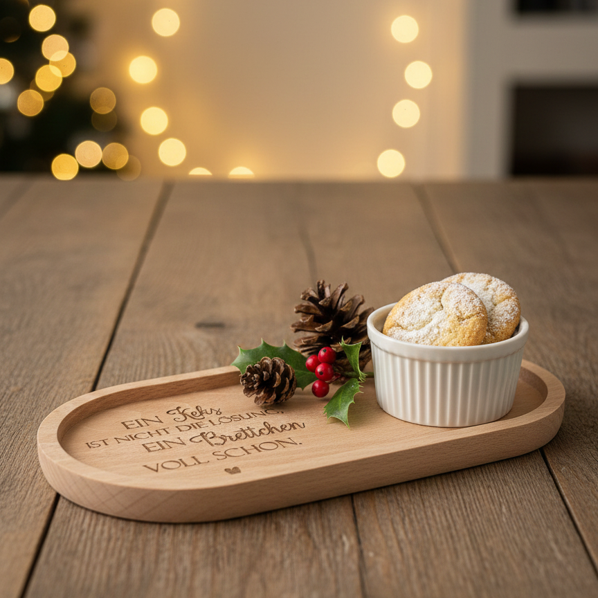 Suchst Du nach einem wirklich besonderen Geschenk? Dann ist unser wunderschönes, ovales Holztablett genau das richtige!
