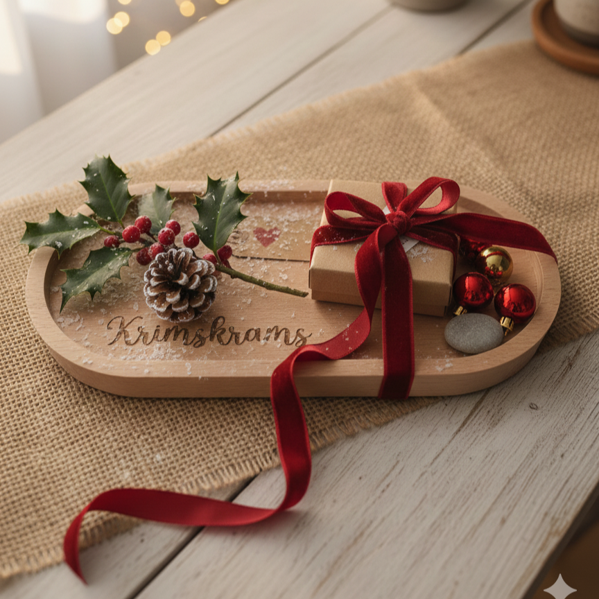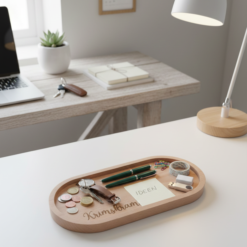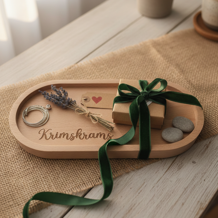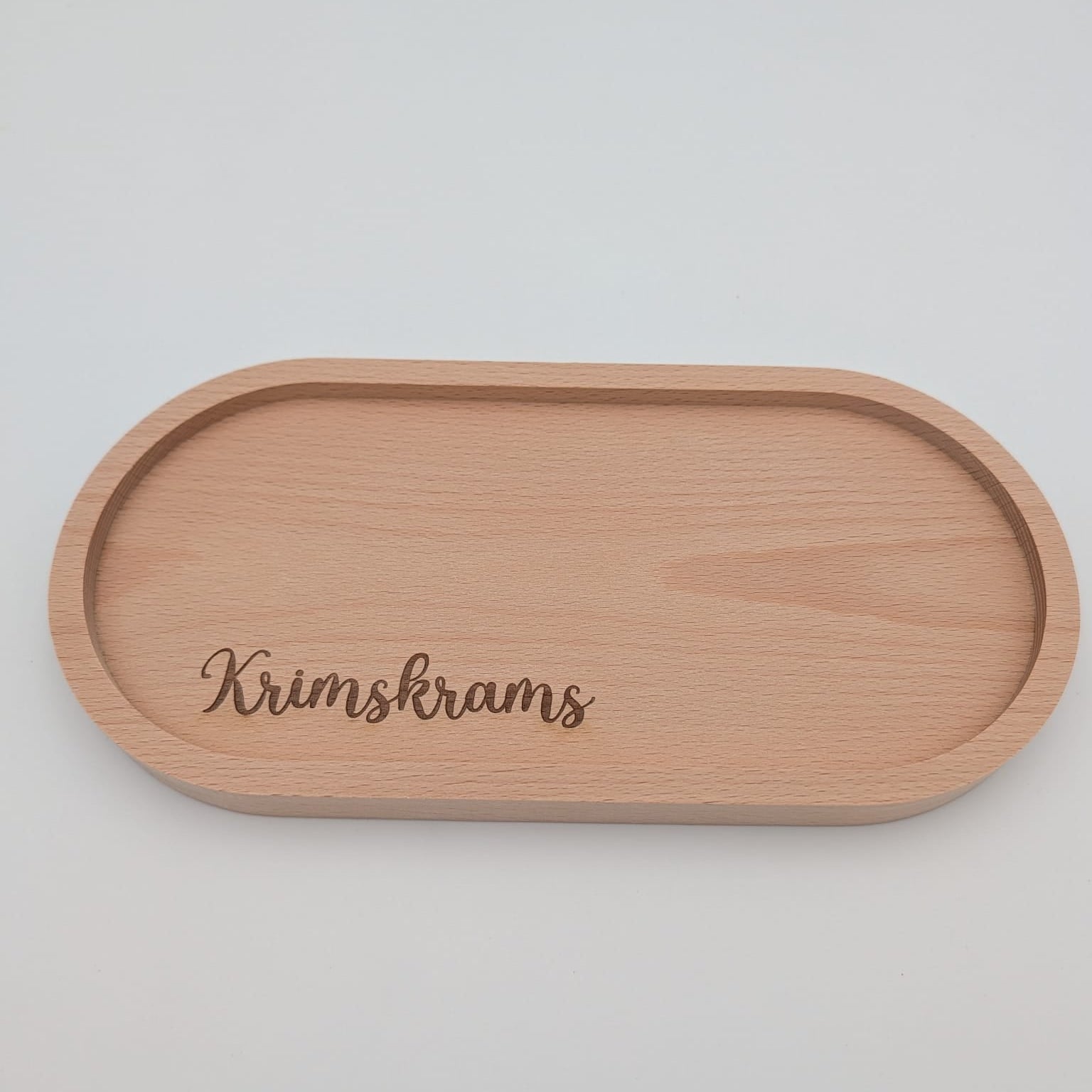Unser wunderschönes, ovales Holztablett mit der Gravur Krimskrams ist genau das richtige, für Menschen die schon alles haben :)