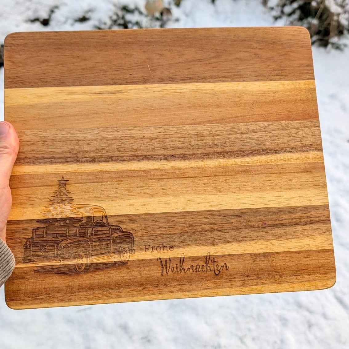 mit Gravur Frohe Weihnachten, Auto mit Tannenbaum