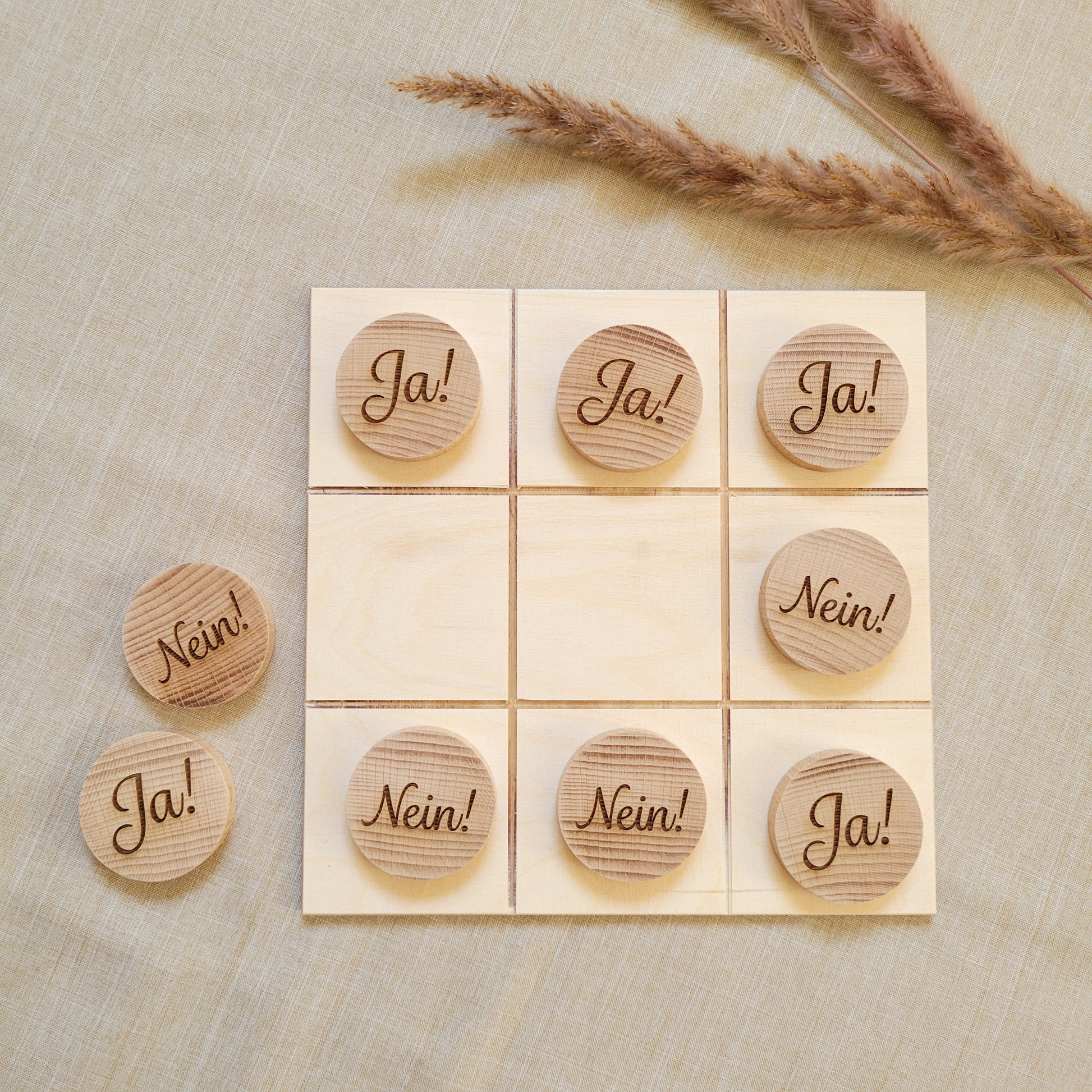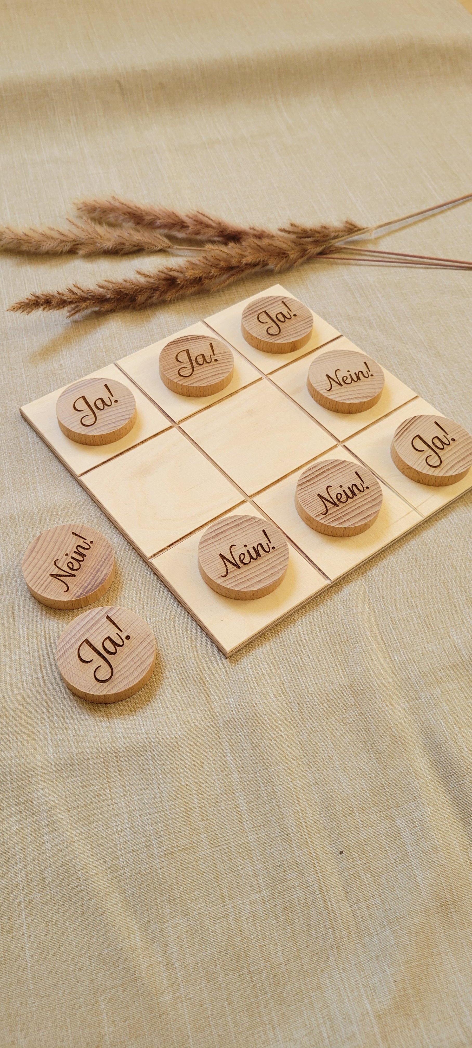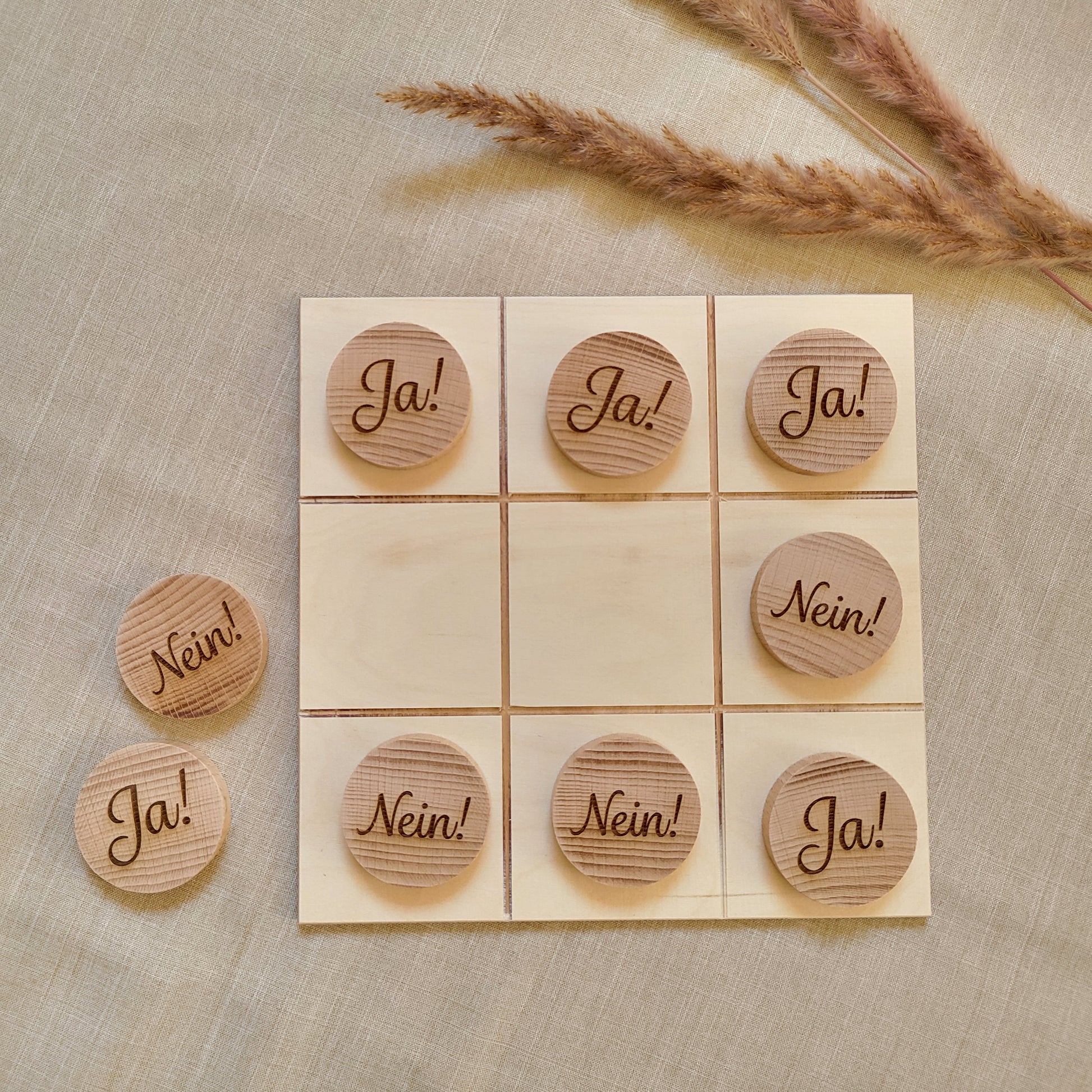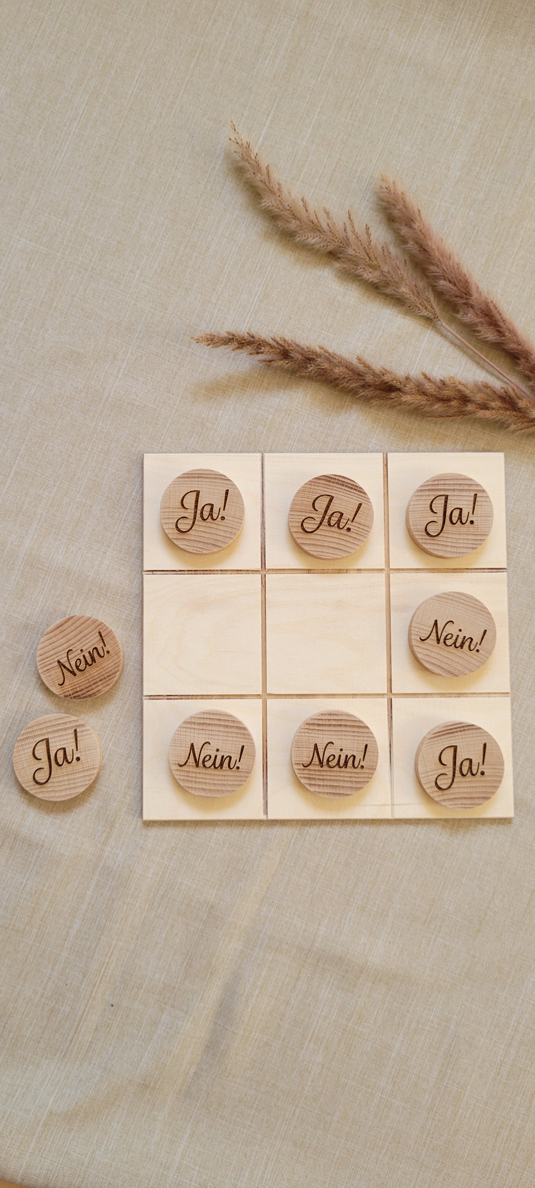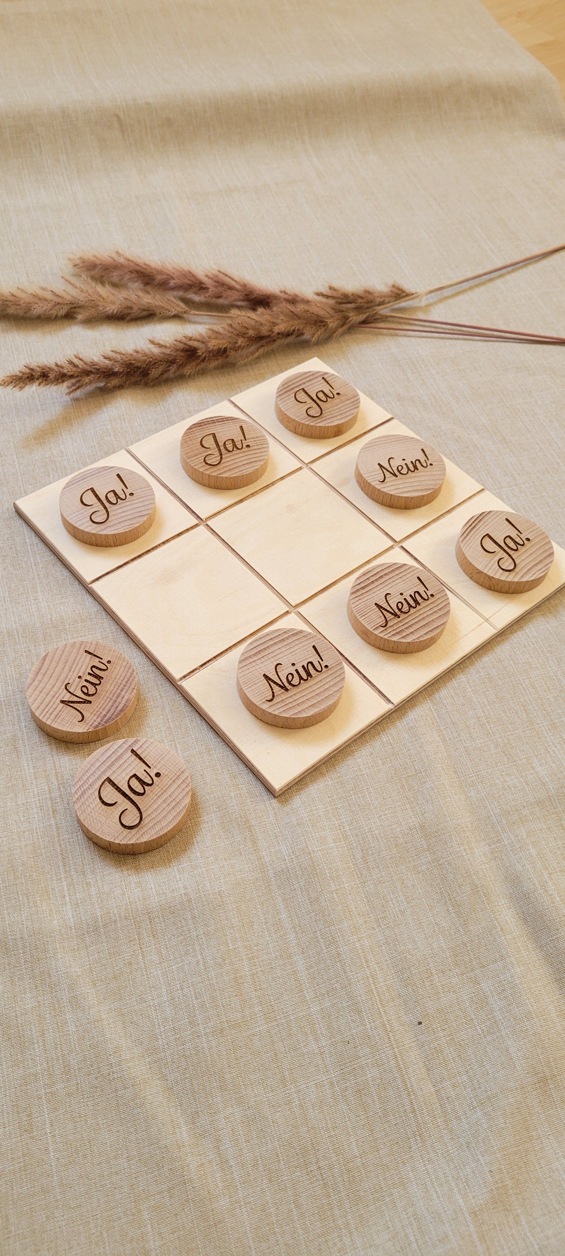 Tik Tak Toe Spiel - Etwas anders und total witzig. Warum nicht mal eine Frage / Diskussion "ausspielen"? Mit unserem kleinen Spiel, kein Problem. Du bist anderer Meinung als dein Partner / Partnerin .. na dann ran ans Brett! kleines Beispiel: Du möchtest eine bestimmte Serie schauen, dein Gegenüber aber nicht. Also wird darum gespielt, du bekommst du die "ja" Steine und dein Spielpartner die "nein" Steine.