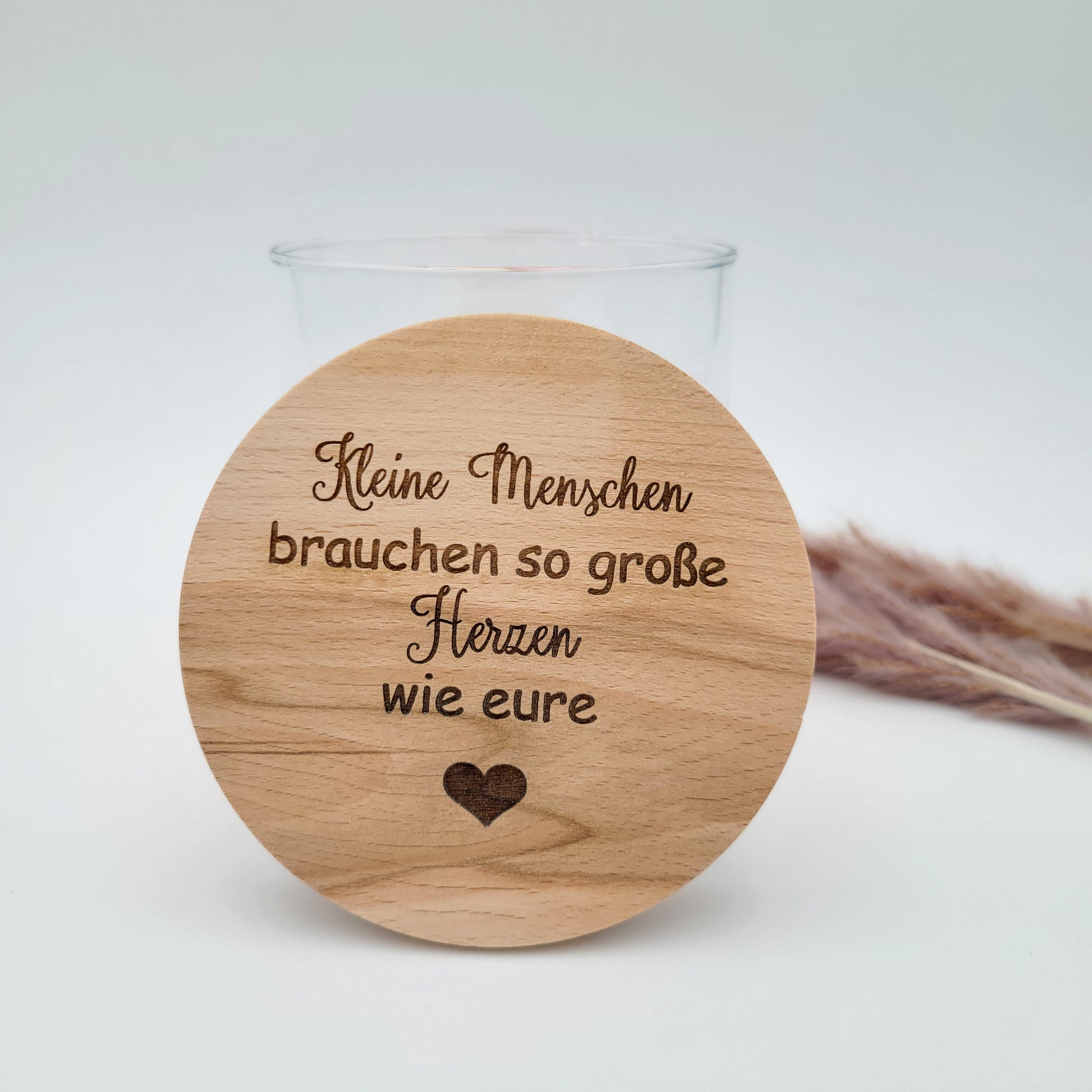 Vorratsglas mit Holzdeckel - Kleine Menschen brauchen so große Herzen wie eure -